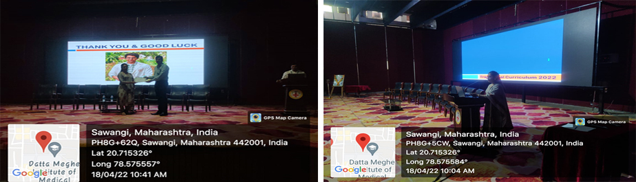 The Transitional Curriculum Program was organized by Dept. Rachana Shariron 18th April to 5thMay 2022. TheProgram was started with Alumni guest lecture by Dr. Vasudha Umate.She was a student of Batch 2012-13. Lecture was started with the theme of “Approach towards Ayurvedaand Journey in MGAC” on the date: 18 /04/2022. She was shared her experiences in college life and talk about various opportunities in Ayurveda practice. She was felicitated with certificate by Dr. Akshay Pargaokar, Assistant professor in dept. of Dravyaguna,M.G.A.C.H.& R.C. All students were so much happy due to its practical approach towards Ayurveda. All faculties, students and parents expressed the program was very fruitful to update their knowledge.