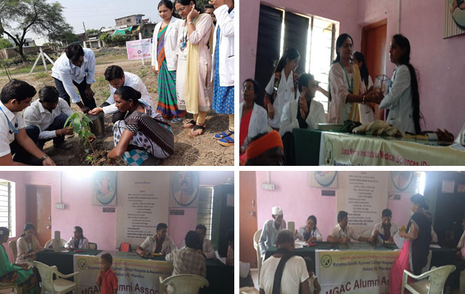 The Program was inaugurated by Alumni Dr. Kimaya Gandhe ,Community Health Officer Wardha , Dr. Jagruti Chaple and Dr. Bhushan Maiskar, Dr. Rohit Waskar and Dr. Ashish Nimborkar. The Higher authorities of village were the distinguished dignitaries on the dice. Floral welcome and felicitation of Alumni students was done by Dr. Jagruti Chaple . It was followed by inaugural speech . The inauguration program was started with Health talk on Dengue, Malaria and dry day by Dr. Kimaya Gandhe . 80 patient was checked by alumni Students. After that we organized the plantation Program for Alumni at Nimgao because If we want to protect our civilization and culture ,then we must plant more trees.