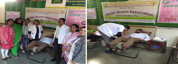 The Blood donation Camp was organized by Alumni Association MGAC on 13-01-2020 at MGACH & RC, Salod(H), Wardha. The Blood donation Camp was inaugurated by Pro VC Dr. Lalit Waghamare , Dr. Shyam Bhutada, Dean of M.G.A.C.H.& R.C., Dr. Priti Desai, Dean Academics, Dr. Jagruti Chaple Dr. Bhagyshri Choudhary and Dr. Rohit Wasekar were